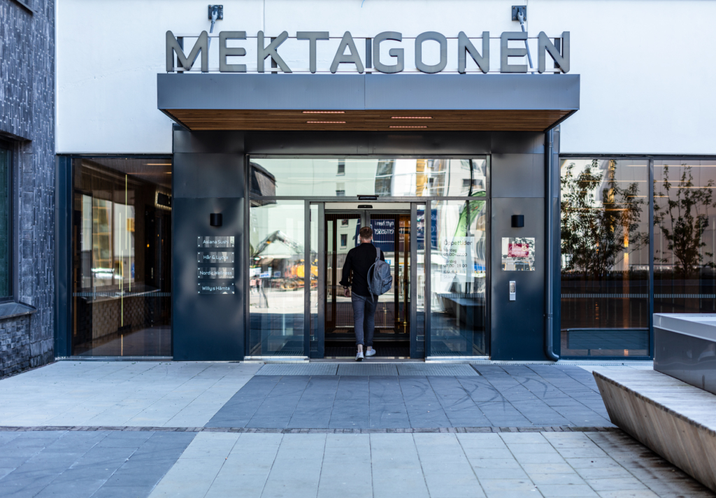 Mektagonen totalrenoverades 2007 och under 2020 byggdes Mektagonen ut med ytterligare 8000 kvm, då passade vi även på att renovera stadsgatan som binder ihop de två fastigheterna för att göra det ännu trevligare för våra hyresgäster att vistas i fastigheten och öka tillgängligheten. Idag är Mektagonen totalt 43 000 kvm.